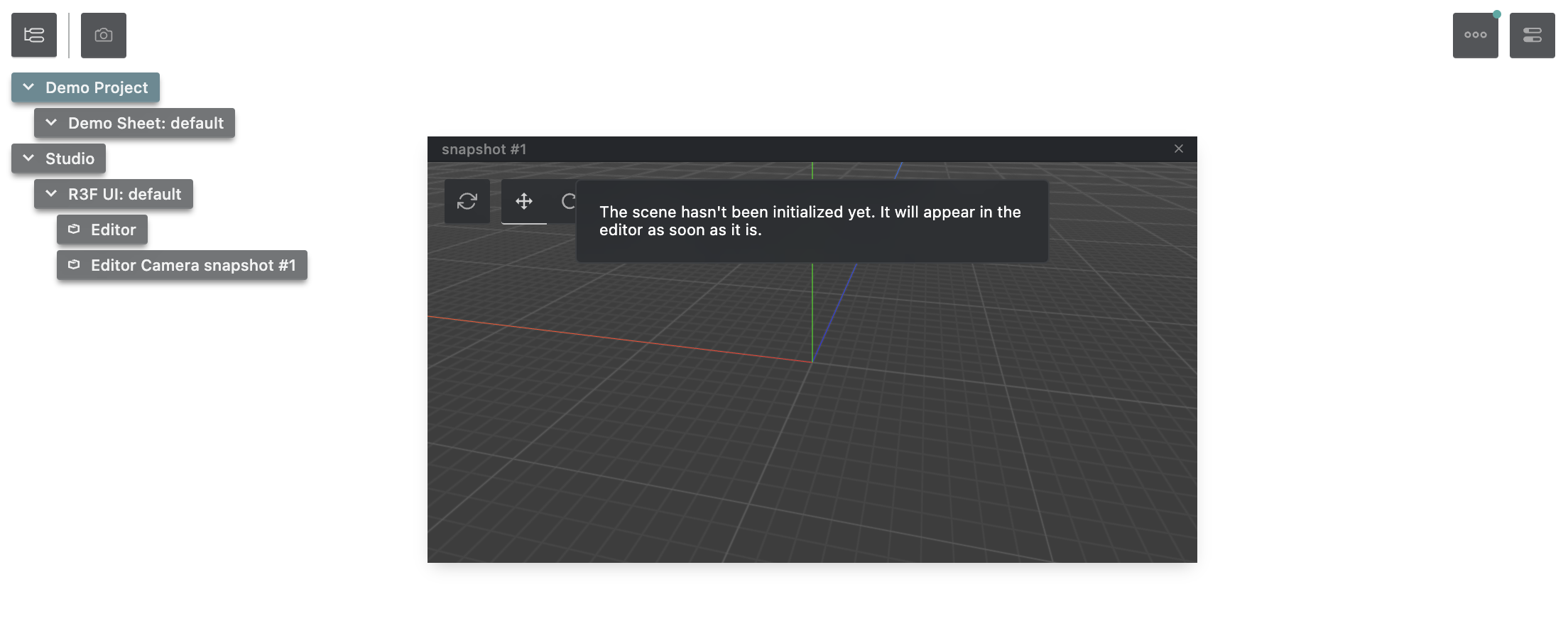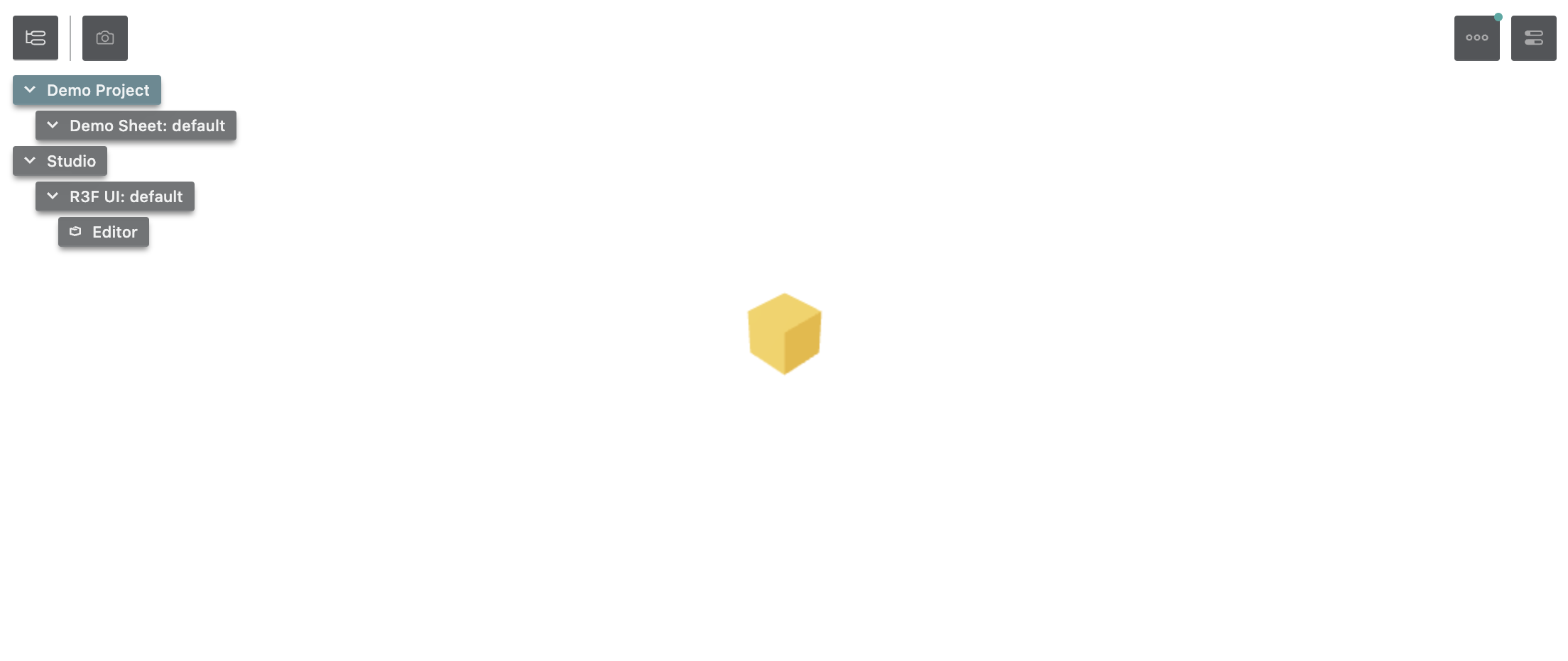 After extending Theatre.js with the r3f extension, a new button will appear in the top left of the UI: